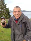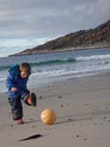 From the highest point on Håholmen island the view is magnificent. Westward we could see straight out to the big ocean. Looking east we could see the famous Atlanterhavs bridge not far away. With a few self brought coins hidden in the ground, we arranged a treasure hunt. Both Eirik and Marius found their nice little treasures...