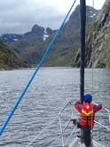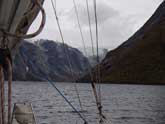 At this stage the engine was running most of the time underway. Nature up north is powerful and beautiful with peaks around on nearly all sides – but there was not much wind for sailing these days.
